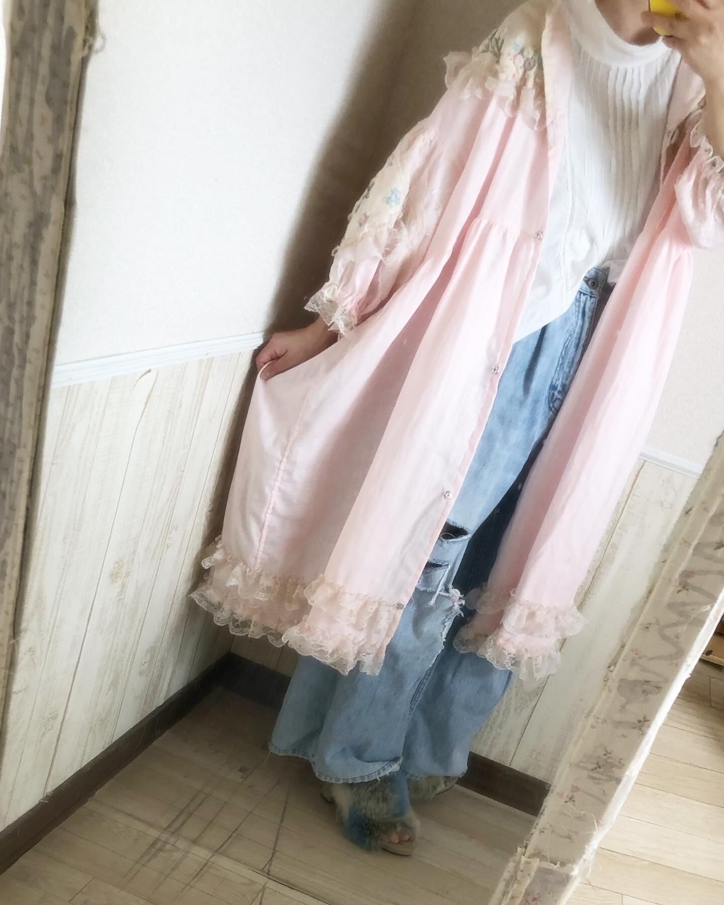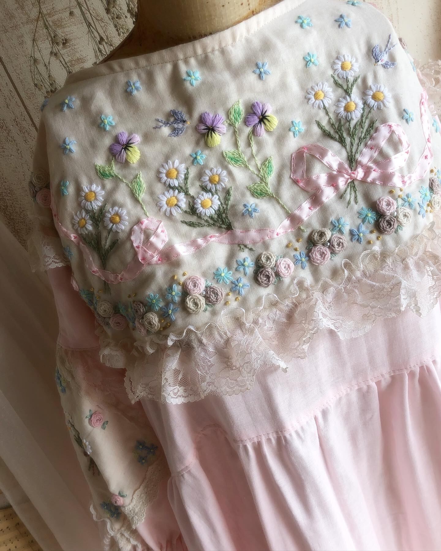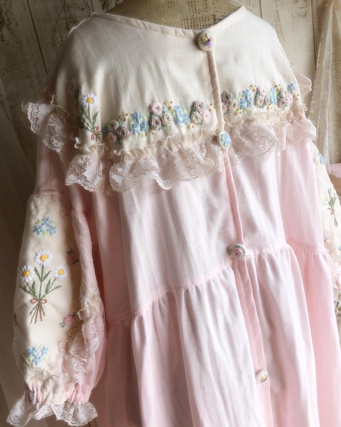 ※手染めレースを使用しています。アンティーク感を出すためにグラデーションをかけたムラ染になっています。