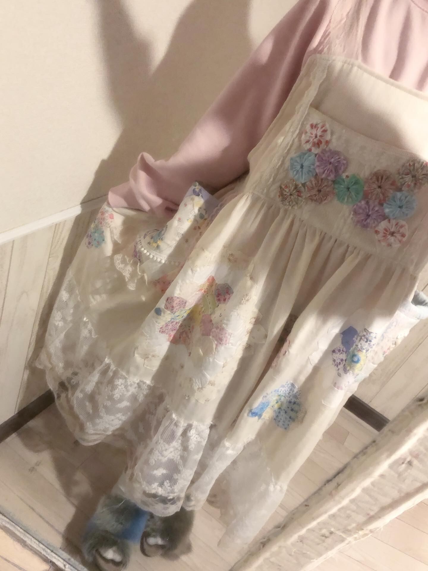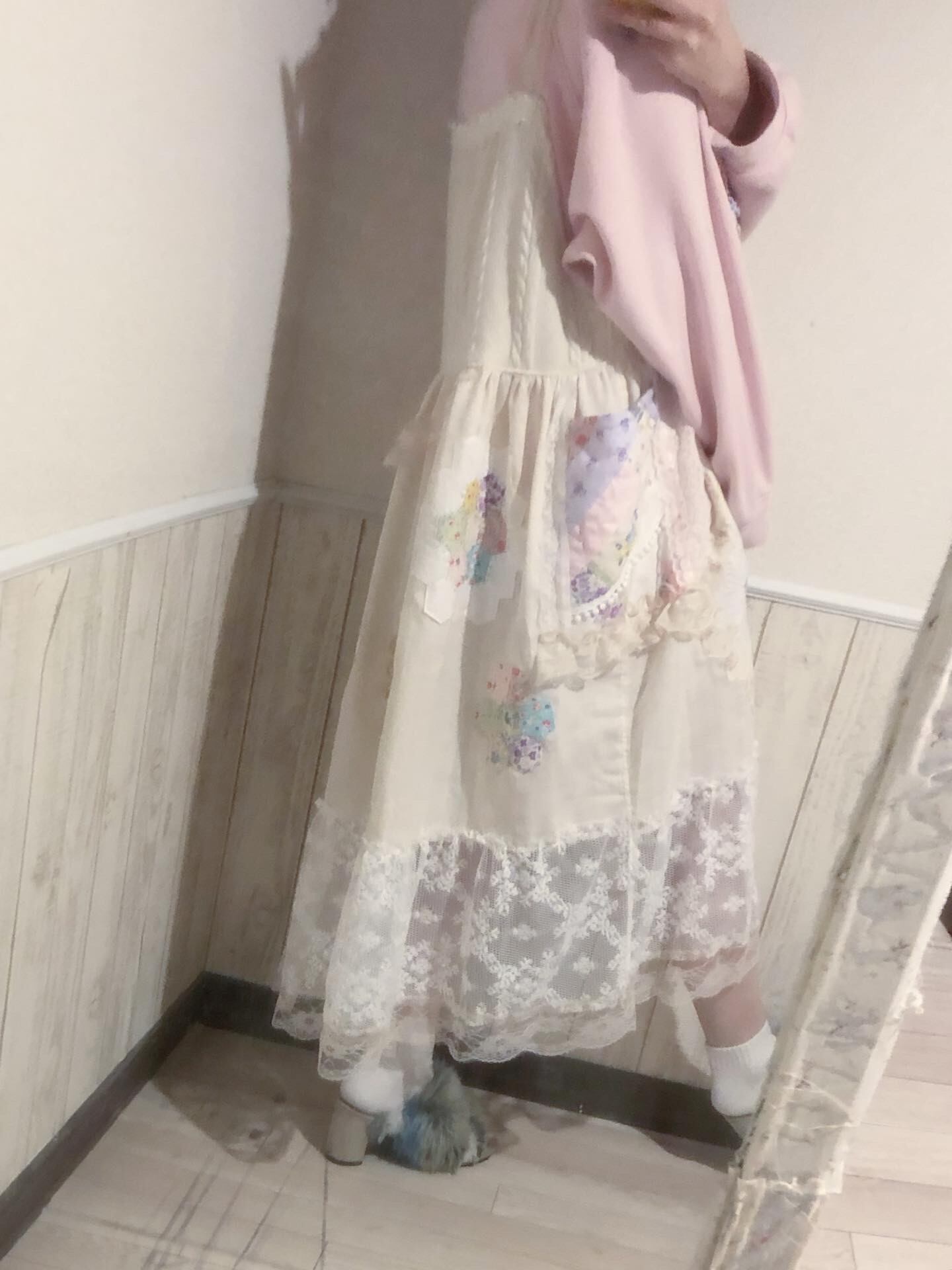 ※手染めレースを使用しています。アンティーク感を出すためにグラデーションをかけたムラ染になっています。